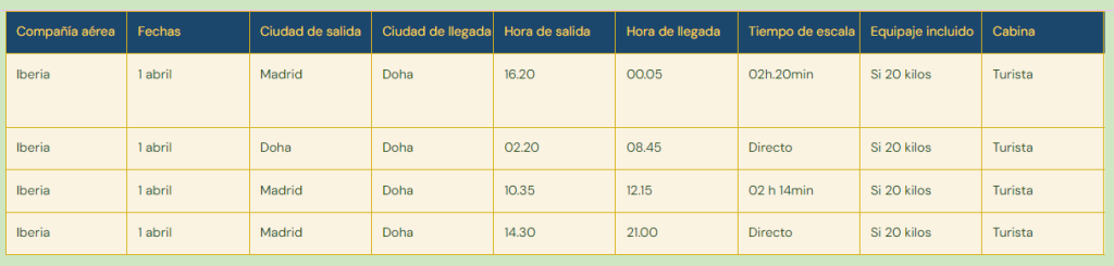 Equipaje incluido: 20 kilos por persona + 7 kilos de equipaje de mano