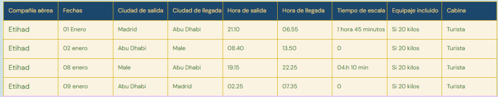 - Vuelos internos previstos en clase turista con equipaje de mano y facturado con Etihad