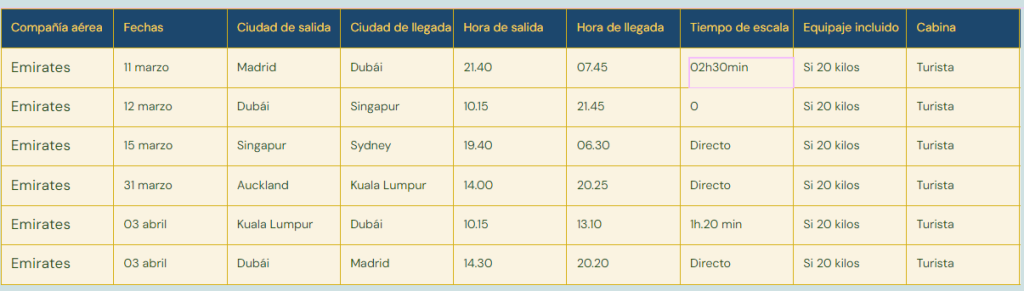 • Vuelos internacionales con salida desde  Madrid en clase turista con salida desde Madrid.